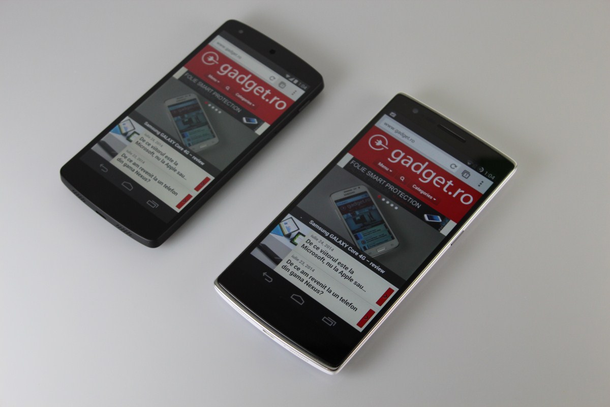 Cunoșteam display-ul integrat pe OnePlus One de la Allview X1 Xtreme. Ambele telefoane încorporează un display JDI OGS de 5.5 inch cu rezoluție 1920×1080 pixeli, protejat cu sticlă Corning Gorilla Glass 3. Jos pălăria și la capitolul ecran, culori superbe, unghi de vizualizare bun, luminozitate mare. Aș reproșa doar lizibilitatea ceva mai redusă sub acțiunea razelor de soare, reflectă spațiul ambiant puțin mai tare.