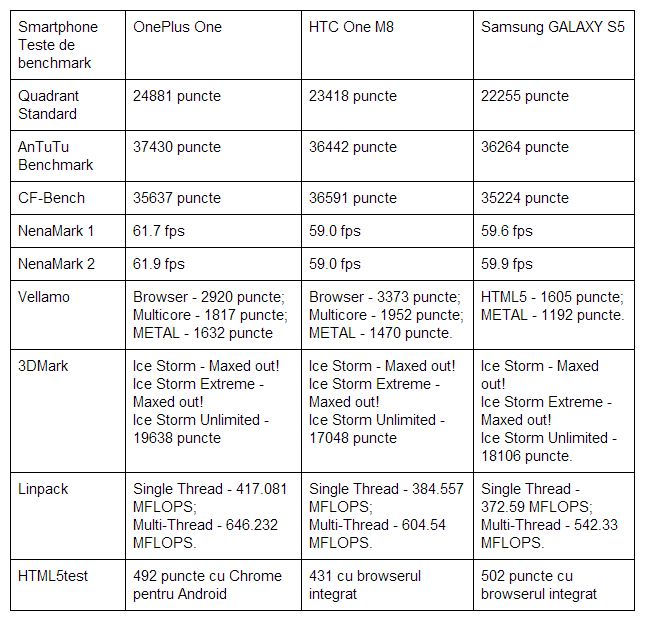 Nu s-a făcut nicio concesie la acest capitol: Qualcomm Snapdragon 801 quad-core la 2.5 GHz pe Krait 400, Adreno 330 GPU, 3 GB RAM, 16 sau 64 GB spațiu de stocare, fără slot pentru microSD. Nu sunt prea multe de spus. Mi-aș fi dorit și o variantă intermediară cu 32 GB spațiu. La 16 GB s-ar putea să fie cam puțin pentru un smartphone recomandat a fi utilizat intensiv în gaming, entertainment (filme, muzică). Există variant cu 64 GB care ar trebui să mulțumească pe oricine.