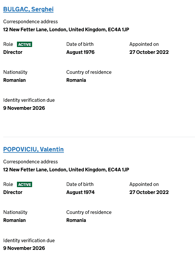 - pe site-ul guvernului britanic company-information.service.gov.uk apar înregistrare două societăţi (Fiber One LTD. şi Orbis Communications Limited) cu persoane de contact Bulgac Serghei (CEO-ul DIGI) şi Popoviciu Valentin (Director Executiv de Strategie şi Operaţiuni în cadrul DIGI). Prima are ca domeniu de activitate reţele de telecomunicaţii, iar a doua vânzarea de telefoane mobile şi de servicii telecom.