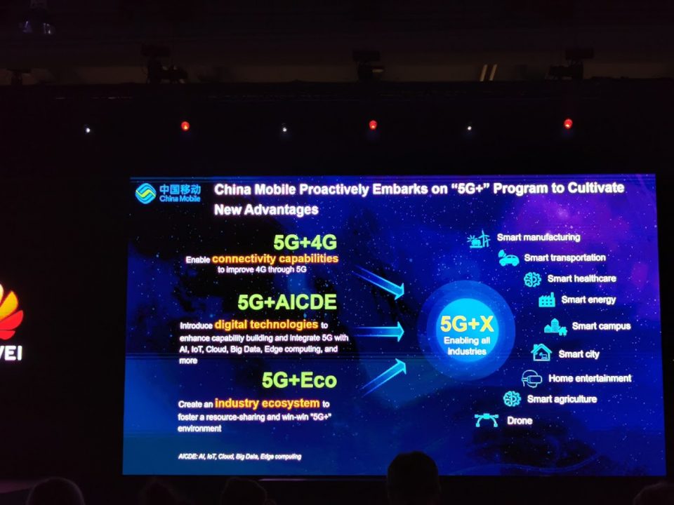 5G + X în opinia China Mobile = aplicații în toate industriile (transport, sănătate, energie, oraș inteligent + campus smart, home entertainment, școli inteligente, agricultură inteligentă, drone etc)