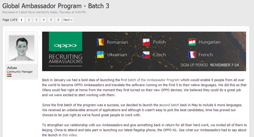 Oppo caută colaborator pe plan local pentru a traduce Color OS în limba română. Colaborarea ar fi de lungă durată cu ceva muncă depusă la final de săptămână din partea ambasadorului și beneficii pe măsură, Oppo N1 și tot ce lansează Oppo pe segmentul de top spre review / test, călătorii în străinătate, cupon care permite achiziția lui Oppo N1 la jumătate de preț etc.