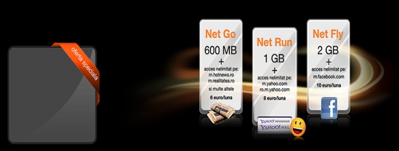 Opţiunea Net Go beneficiază de 600 MB trafic naţional de internet pentru 6 euro, Net Run beneficiază de 1 GB trafic naţional de internet pentru 8 euro, iar Net Fly permite utilizarea a numai puţin de 2 GB de trafic naţional de internet pentru 10 euro. Clienţii vor primi de asemenea acces nelimitat din Portalul Orange la mai multe site-uri de ştiri şi social media.