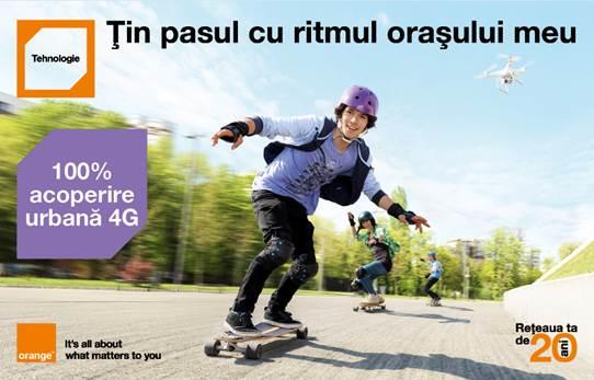 Orange România a anunţat în acest început de săptămână că oferă acoperire 4G 100% la nivel urban. Reţeaua 4G este prezentă în 7585 de localităţi, iar cele mai mari vârfuri de trafic se înregistrează în oraşele Bucureşti, Cluj, Iaşi, Sibiu şi Mureş. Creşterile de trafic importante se înregistrează în intervalul orar 20:00 şi 22:00, iar principalele categorii de conţinut sunt browsingul (47%), streamingul (39%) şi aplicaţiile de messaging (5%).