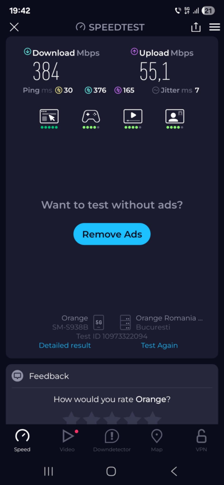 Şi dacă tot am scris acest articol despre dezvoltarea tehnologiei 5G / 5G+ de la Orange, am făcut în timp real un test din faţa monitorului pentru a vedea ce viteze primesc de la operatorul portocaliu la mine în apartament. Rezultatul nu sună deloc rău: