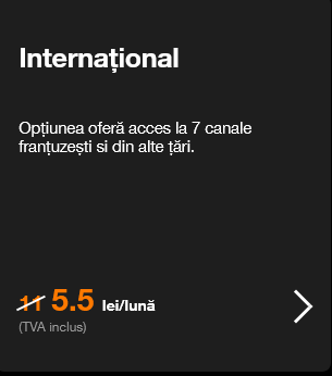 Orange a lansat recent o nouă extraopţiune tv, una denumită comercial Orange Internaţional. Aceasta este formată din 7 noi canale tv, iar pentru o perioadă limitată de timp poate fi activată cu o reducere de 50%.