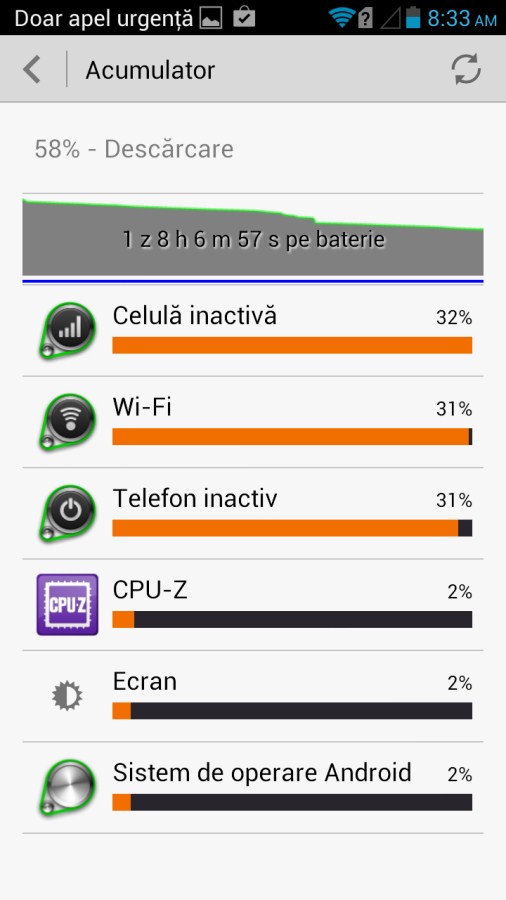Procesorul Snapdragon 400 dual-core nu se dovedește a fi un gurmand major. Punct PRO pentru Huawei și optimizările făcute.