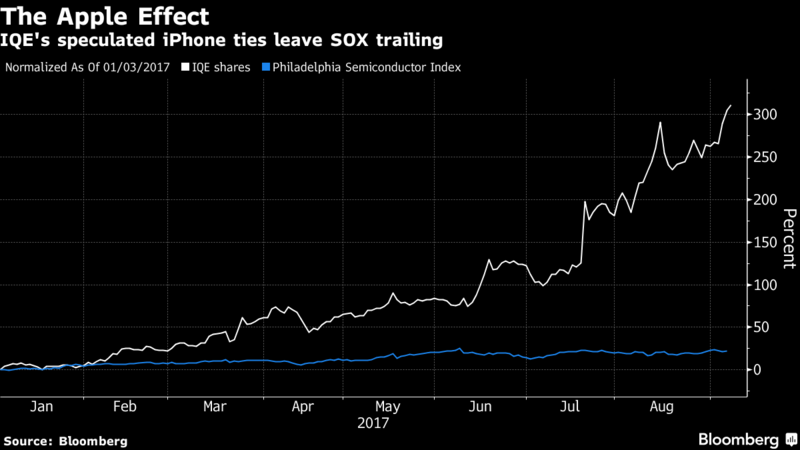 Se pare că orice asociere de colaborare cu Apple reprezintă o adevărată mină de aur pentru companiile mai puţin cunoscute. IQE este un mic producător de cip-uri din Ţara Galilor, iar în urma unui zvon apărut în urmă cu câteva luni că această companie ar fi unul dintre furnizorii Apple pentru noile generaţii de iPhone-uri, acţiunile la bursă au explodat şi au crescut cu 314%. IQE ar furniza celor de la Apple o plăcuţă semiconductoare numită wafer utilizată la fabricarea circuitelor integrate şi a altor microdispozitive.
