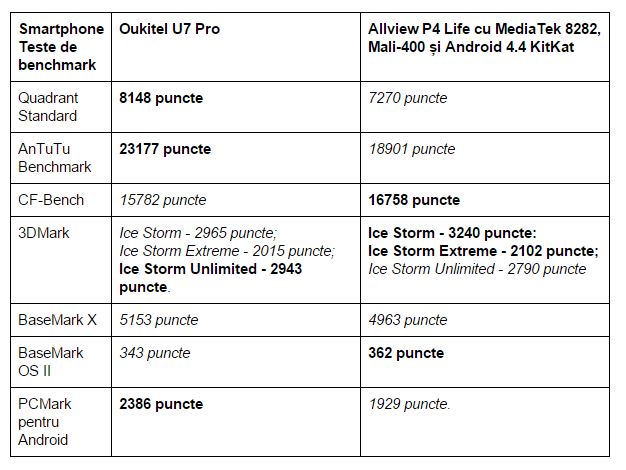 Screenshots cu testele de benchmark rulate pe U7 Pro: