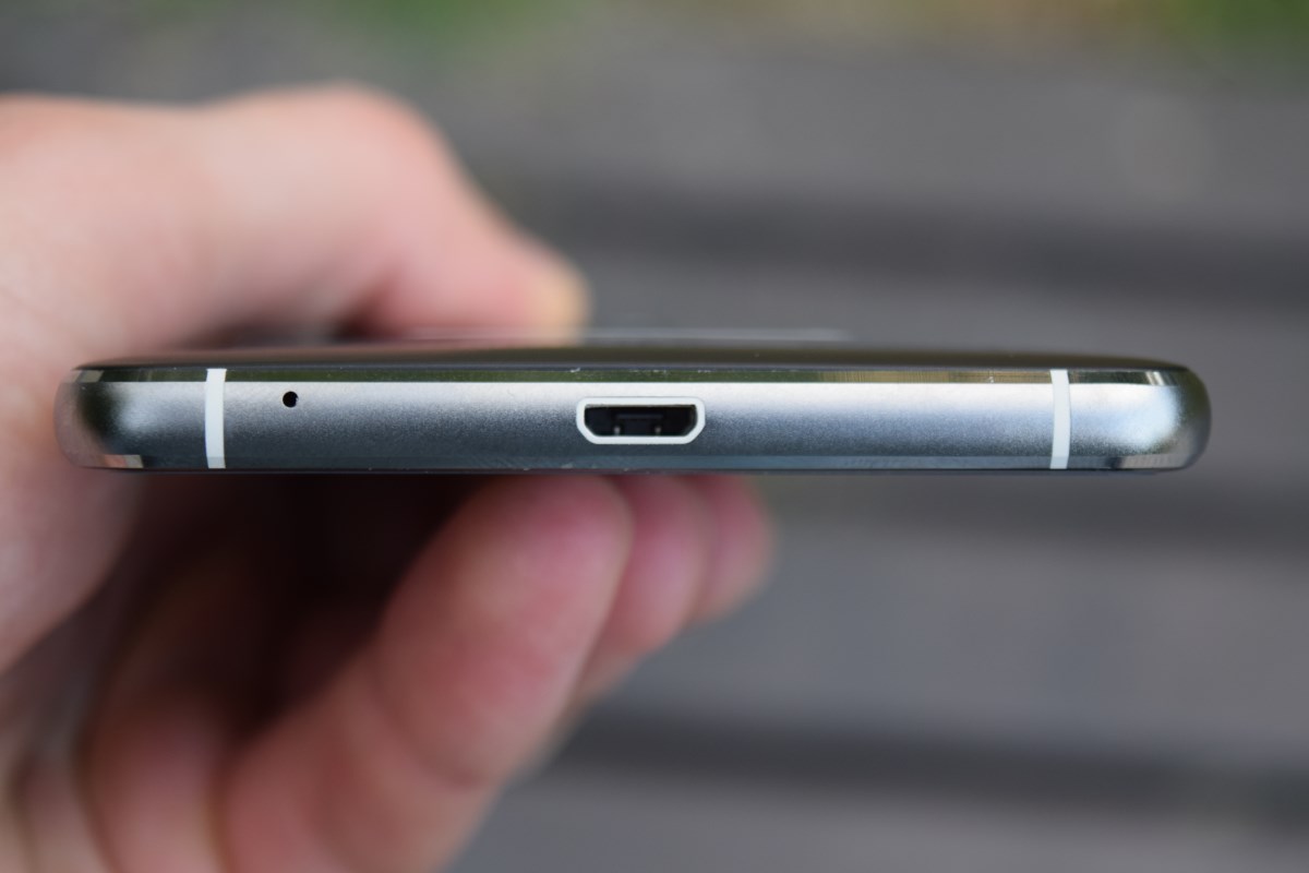 La exterior dăm de jack-ul de 3.5 mm (zona superioară), microfonul şi portul microUSB (zona inferioară), slotul pentru SIM (în laterala stângă), tastele de volum şi butonul de power (în laterala dreaptă).