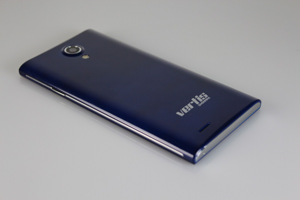 Ca și aspect, Vertis se prezintă cu colțuri drepte, spatele este plat și doar spre margini puțin curbat, camera de 8 MP iese ușor în afară, iar difuzorul se află în partea din stânga-jos. Deasupra lui, dar central, se regăsește numele modelului și cel al producătorului, care lipsesc de pe parte frontală a device-ului,unde, sus găsim difuzorul pentru convorbiri, camera secundară de 2 Megapixeli, senzorul de lumină și proximitate, iar în partea de jos a ecranului regăsim tastele Back, Home și Mai multe opțiuni – de la dreapta la stânga.