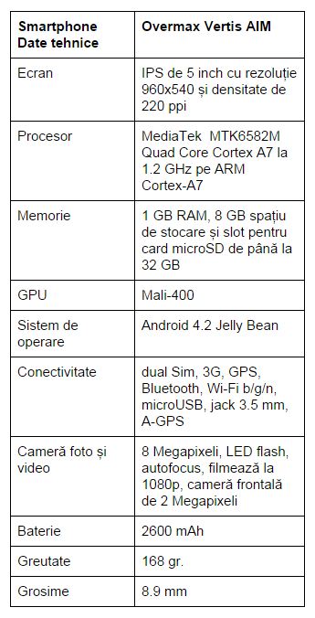 Overmax spune despre Vertis AIM că ,,vine în întâmpinarea nevoilor de afaceri”. Avem de-a face cu un smartphone mid spre low-end, cu un ecran IPS de 5 inch, procesor quad-core, 1 GB RAM și 8 GB spațiu stocare și cu anumite aplicații preinstalate. Dacă sloganul companiei se dovedește susținut de experiența în utilizare, sper să vă dați seama din rândurile ce urmează.