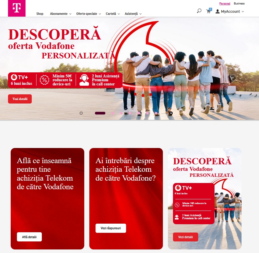 De curiozitate am intrat pe site-ul Telekom România să văd dacă ei organizează ceva (mă gândeam că şansele sunt mici, dar am zis să încerc), iar ce am găsit acolo mi-a trezit o oarece nostalgie. Pagina oficială afişată în modul implicit are acum puţin magenta şi mult mai mult roşu’ Vodafone.