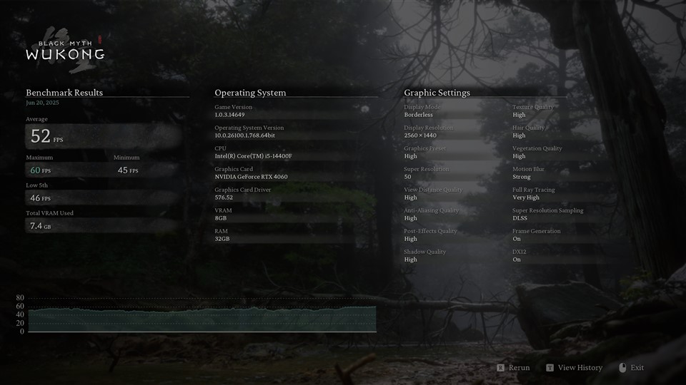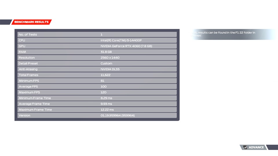 Pe lângă cele de mai sus, am mai trecut sistemul PC Gaming BALAUR Battle Ready și prin testele din jocurile Black Myth: Wukong, Cyberpunk 2077 și F1 22, iar informații precum rezoluția la care au rulat, detaliile grafice și rezultatele finale pot fi parcurse din capturile de ecran de mai jos.