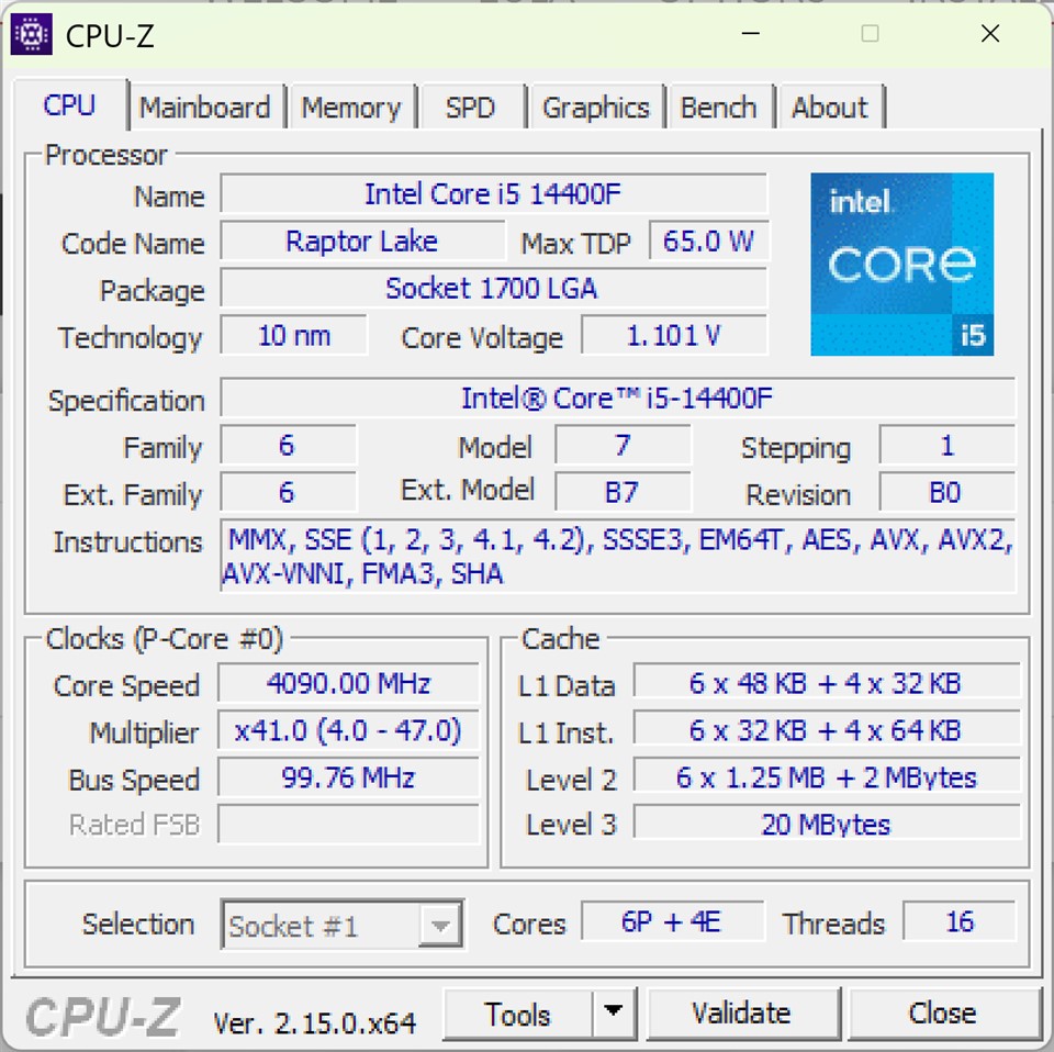 | Procesor | Procesor Intel Raptor Lake Refresh Core i5 14400F, 10 nuclee cu până la 4.7 GHz, 16 fire execuție, 20 MB Intel Smart Cache, 65W putere totală disipată |
