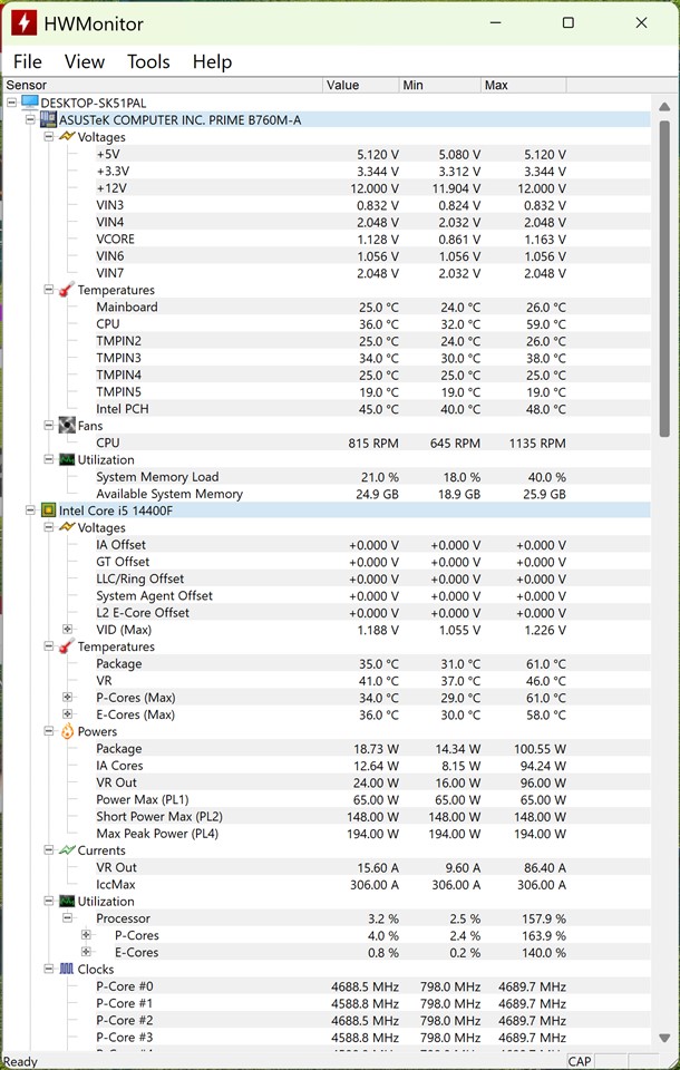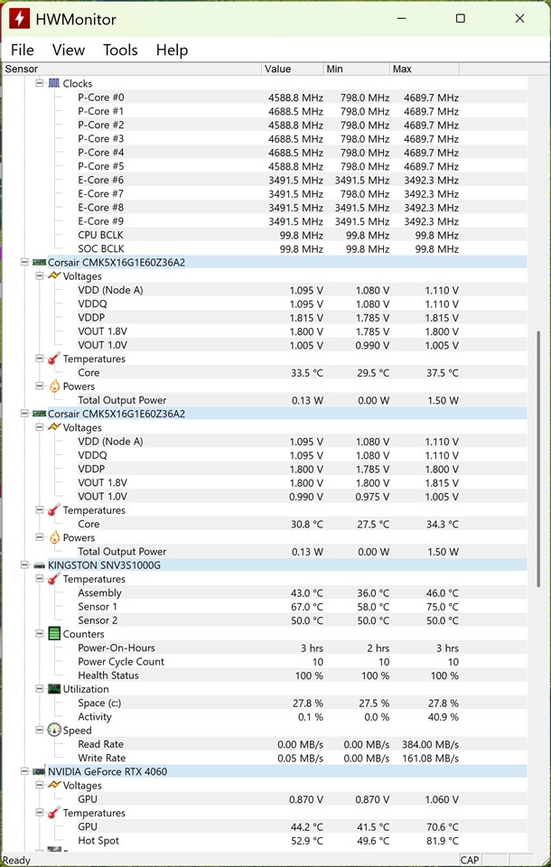 La sfârșitul tuturor testelor am realizat screenshot-uri din HWMonitor de la CPU-ID, iar ceea ce scoate în evidență acest soft apare destul de clar din imagini: