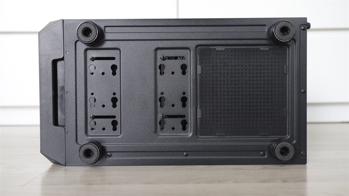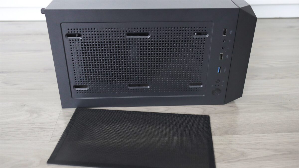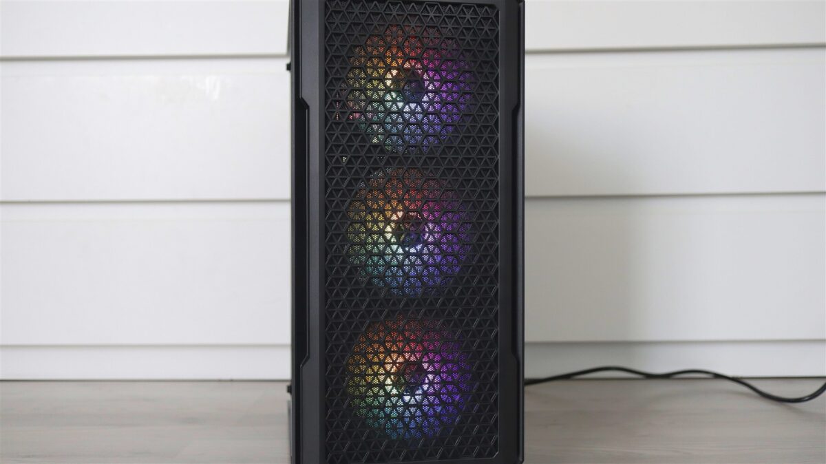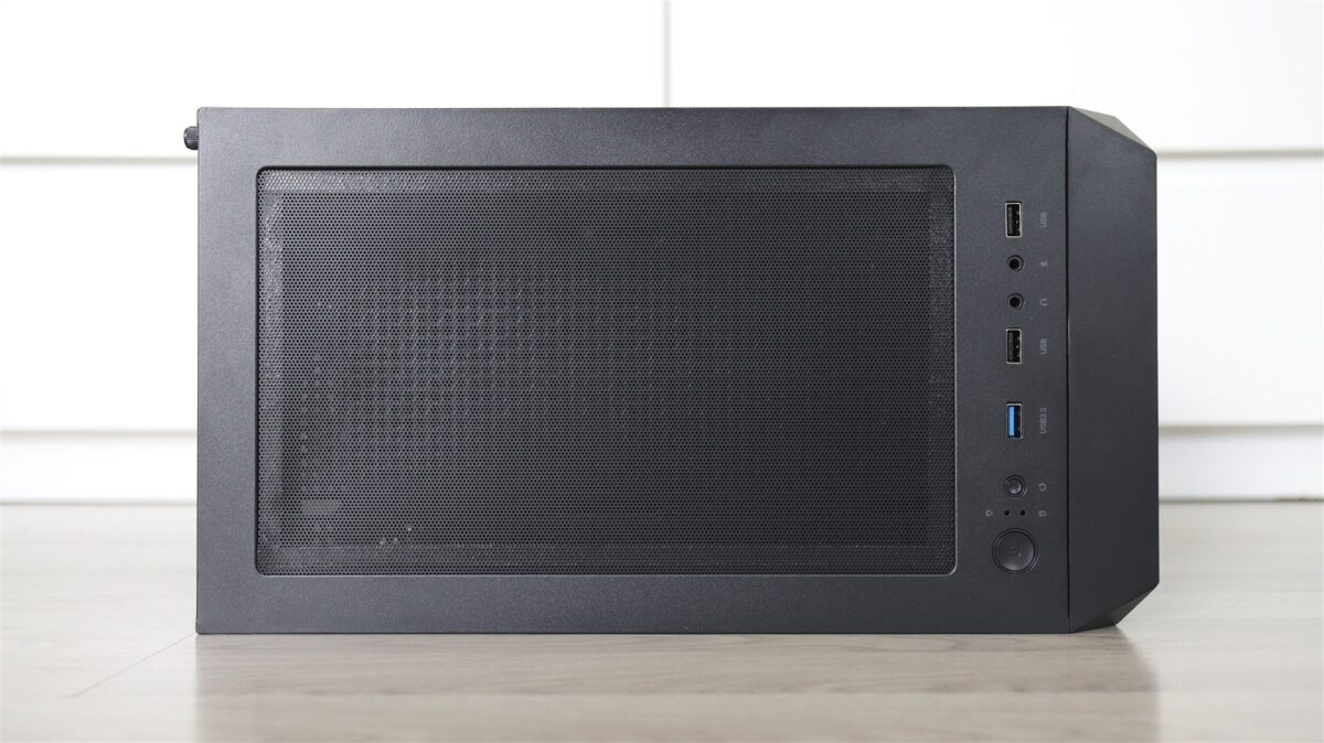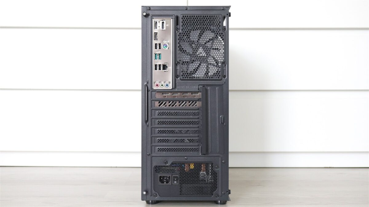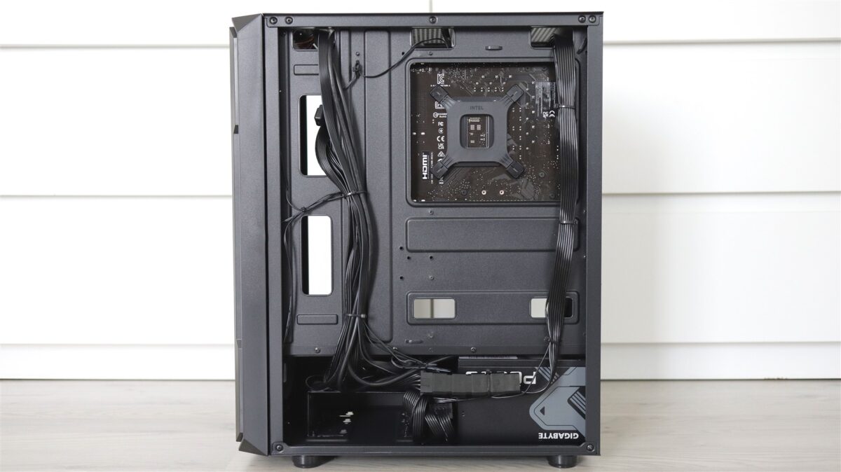 Carcasa nu propune neapărat ceva ieșit din comun, este una din zona entry level, dar care sincer nu se prezintă ca un produs ieftin. Aș aprecia că, prin materiale și construcția generală, este o carcasă onestă, mai ales raportat la cât costă ea separat. Are sticlă securizată pe laterala din stânga, panou plin de tablă pe dreapta și permite un bun management al cablurilor, asta dacă cineva își și dă silința pentru asta. În cazul de față, cei de la PC Garage mi se pare că au făcut o treabă bună, ca de altfel de fiecare dată când am mai testat sisteme asamblate de ei.