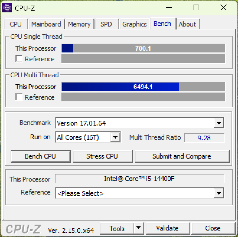| CPU-Z 2.15.0 (puncte) Single Thread Multi Thread | 700.1 6494.1 |