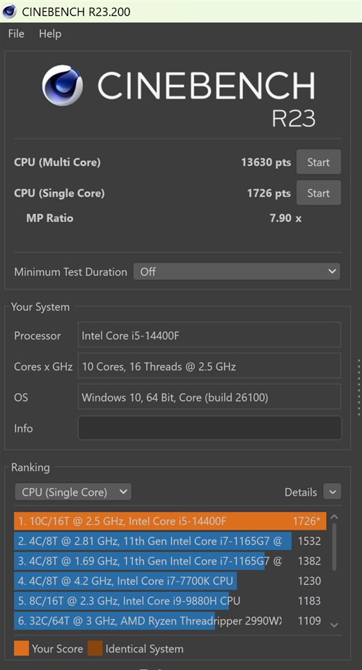 | Cinebench R23 (puncte) Single Core Multi Core | 1726 13630 |