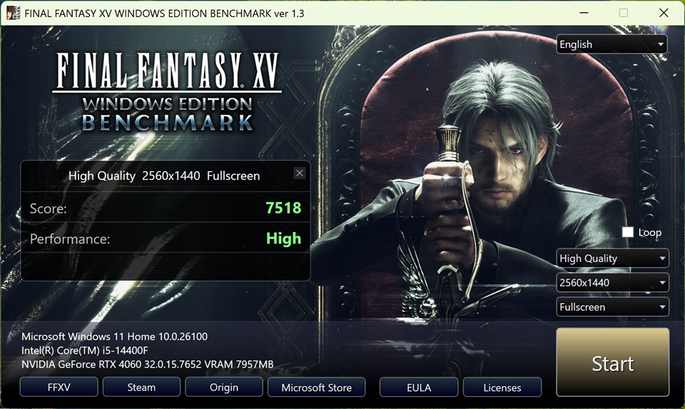 | Final Fantasy XV (puncte) 2560 x 1440 High Quality | 7518 (High) |