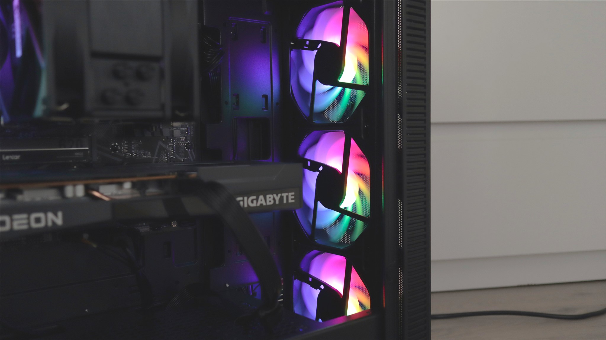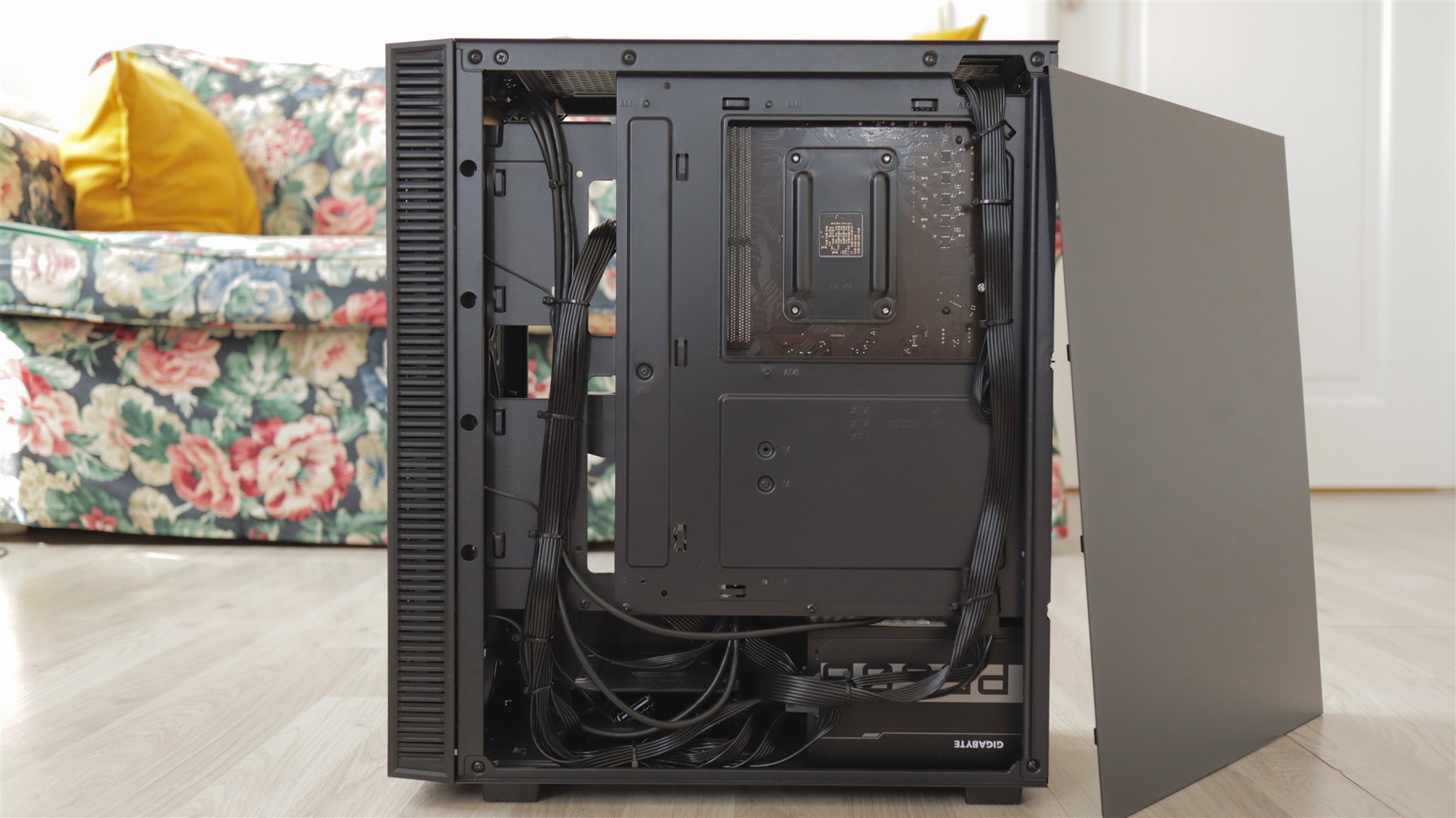 Așadar, toate cablurile care pot fi ascunse vederii sunt trase corect prin spatele plăcii de bază, unde sunt grupate și fixate optim.
