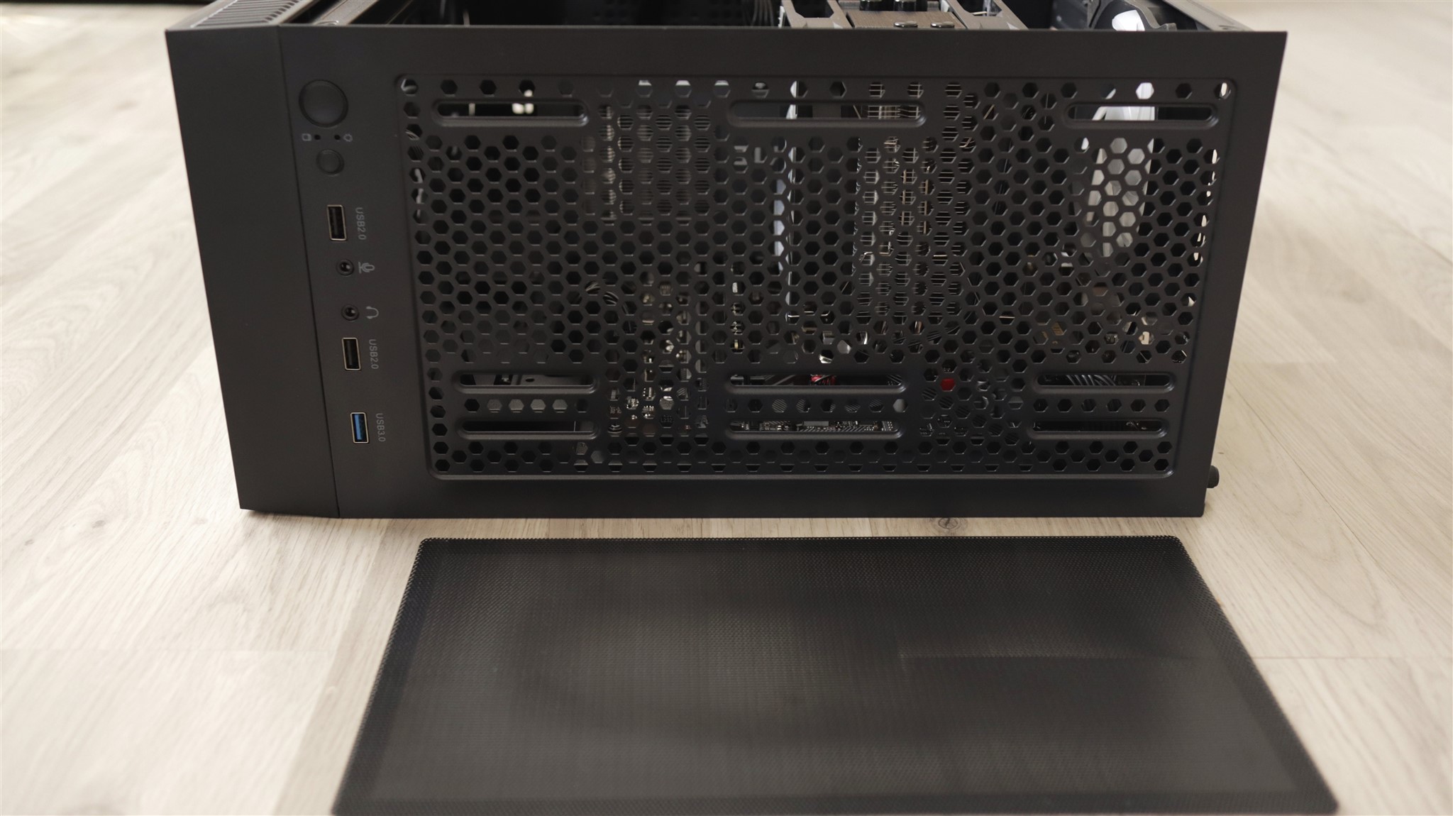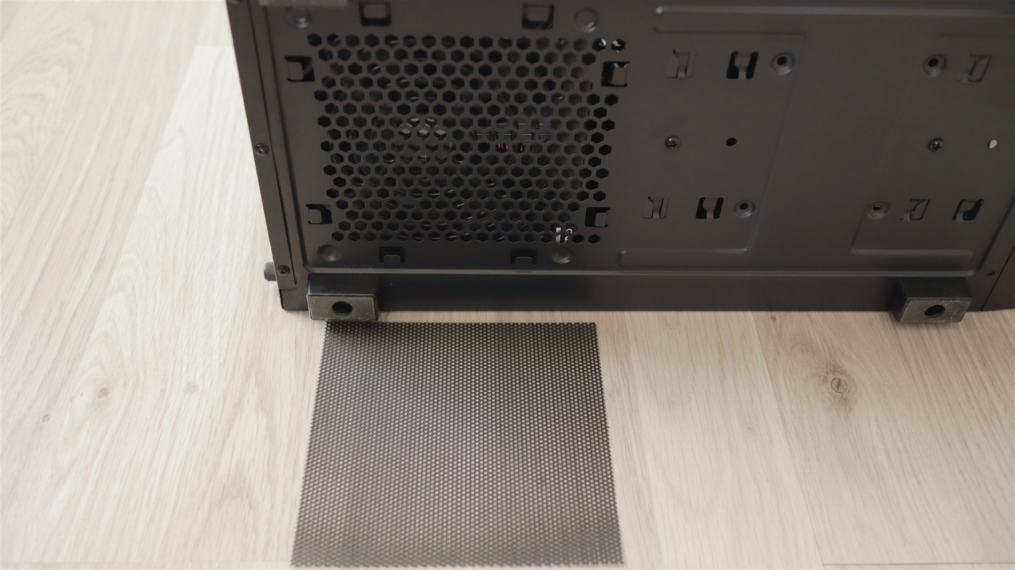 Sus avem o grilă mare acoperită de un filtru de praf ce se fixează prin magnet, cum și jos, în dreptul sursei, mai este un alt filtru detașabil. Acesta este o idee mai dificil de scos, dar mai ales de pus la loc.
