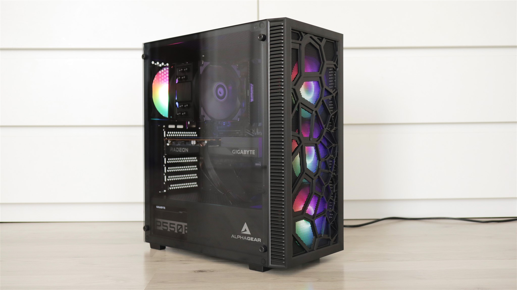 Așadar, Zmeu Legendar powered by Gigabyte a fost conceput începând cu o carcasă Alphagear, brandul propriu al celor de la PC Garage. Alphagear Adept este una middle tower, deci destul de compactă. Am apreciat că întreg computerul are o greutate mai mult decât decentă, în sensul că nu trece de pragul psihologic de 10 kg, ba chiar rămâne destul sub acest prag – 8.2 kg.