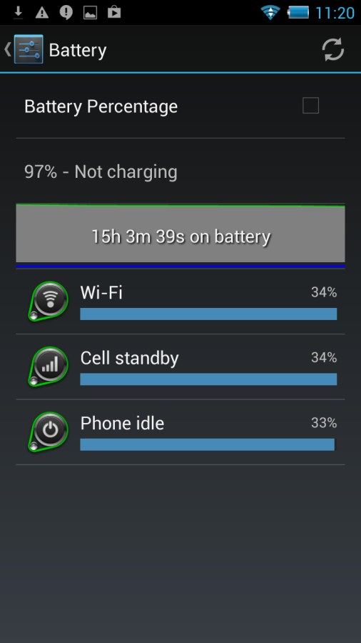 Unul dintre elementele ce atrage în mod deosebit la acest smartphone, baterie de 3300 mAh în combinație cu procesorul MediaTek quad-core pe ARM Cortex-A7 + display de 4.7 inch cu rezoluție la 720p își face datoria cu brio și oferă 2 zile de autonomie în condiții de utilizare moderată. Cu luminozitatea la maxim, sincronizări în fundal și utilizare intensivă cu greu reușești să-i consumi acumulatorul într-o singur zi.