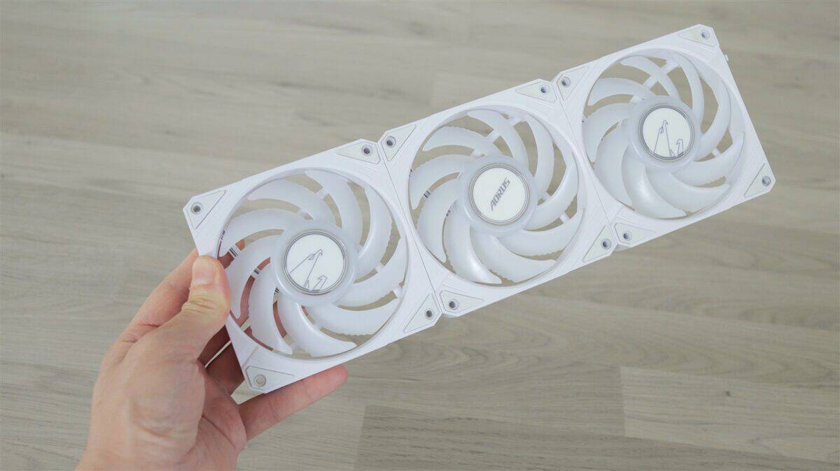 Cooler-ul CPU GIGABYTE AORUS WaterForce II 360 ICE este promovat ca o soluție premium de tip all-in-one care pune un accent deosebit pe ușurința instalării, datorită noului design EZ-Chain Mag, ce permite conectarea ventilatoarelor prin interconectare magnetică fără cabluri individuale complicate (așa cum se poate vedea din imaginile de mai sus). Performanța de răcire este susținută de un radiator de 360 mm echipat cu ventilatoare cu presiune statică ridicată și de un bloc de apă reproiectat, care mărește fluxul de lichid, asigurând stabilitate chiar și pentru cele mai solicitante procesoare. Din punct de vedere estetic, varianta ICE se remarcă prin finisajul complet alb și blocul de apă rotativ la 330 de grade, care dispune de iluminare ARGB personalizabilă prin software-ul proprietar pentru a se integra perfect în orice configurație modernă.
