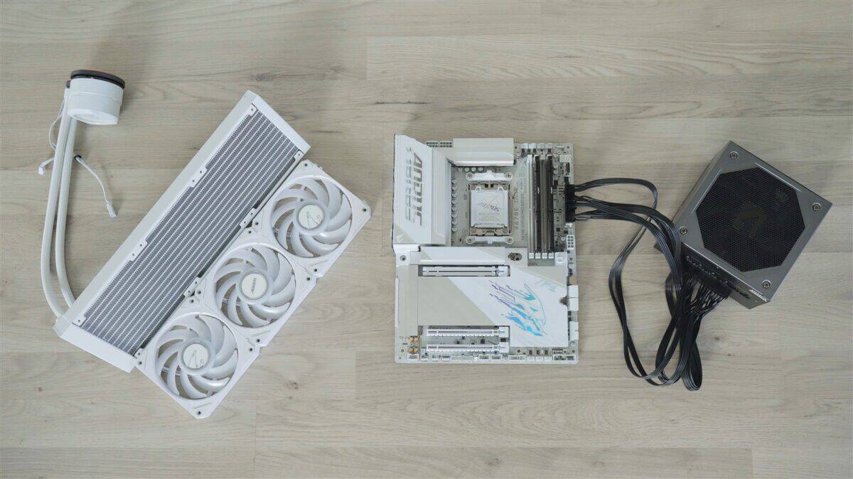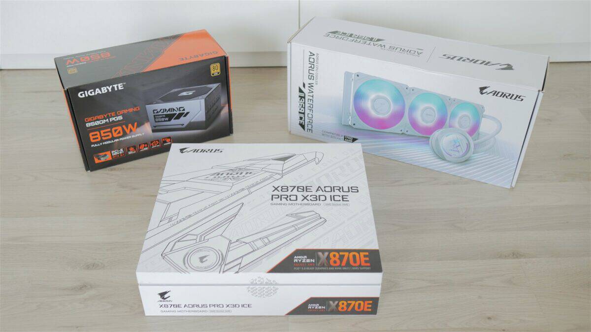 Trebuie spus de la bun început că, pe lângă placa de bază GIGABYTE X870E AORUS PRO X3D ICE, am mai primit și o sursă GIGABYTE Gaming 850GM PG5, precum și un cooler CPU GIGABYTE AORUS WaterForce II 360 ICE. Ambele componente ar putea fi considerate unele dintre cele mai bune opțiuni spre a face echipă cu placa de bază GIGABYTE X870E AORUS PRO X3D ICE în construirea unui sistem corect.