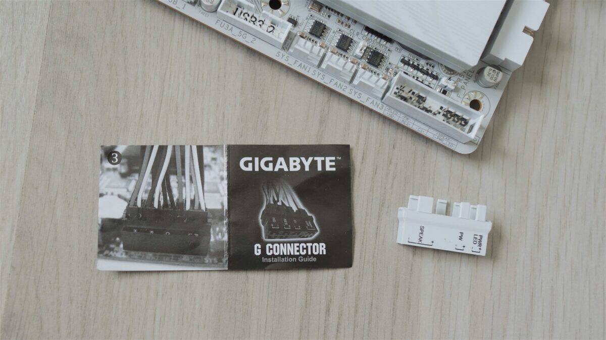 GIGABYTE X870E AORUS PRO X3D ICE vine în cutie alături de o multitudine de accesorii: începând de la un mic ventilator cu șuruburi dedicate, cooler pe care îl poți monta spre a spori fluxul de aer din jurul memoriei RAM; o antenă externă pentru Wi-Fi, cu conector rapid; două cabluri plate SATA 3, dintre care unul cu un capăt la 90 de grade; adaptor pentru conexiunile carcasei (buton PWR, LED PWR, LED HDD etc); sticker 3D AORUS și alt set de abțibilduri AORUS; ghid de instalare și pliant cu informații de reglementare, legale etc.