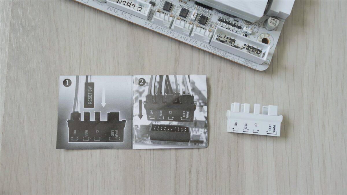 În primul rând, din partea mea ajută foarte mult adaptorul din pachet în care poți introduce mult mai facil fiecare conector mic de la carcasă, mă refer la cele pentru butonul și LED-ul Power, la cel de Reset, eventual, și la LED-ul de status pentru HDD, mai precis acum pentru SSD. Pentru mine, de cele mai multe ori când am asamblat un nou PC acest pas a fost unul dintre cele care a necesitat multă atenție și precizie. Cu adaptorul din pachet este mult mai simplu, fiindcă introduci mai întâi fiecare mic conector în acel adaptor, într-o poziție mai comodă și nu direct pe placa de bază, iar apoi întreg adaptorul se conectează mult mai simplu la GIGABYTE X870E AORUS PRO X3D ICE.