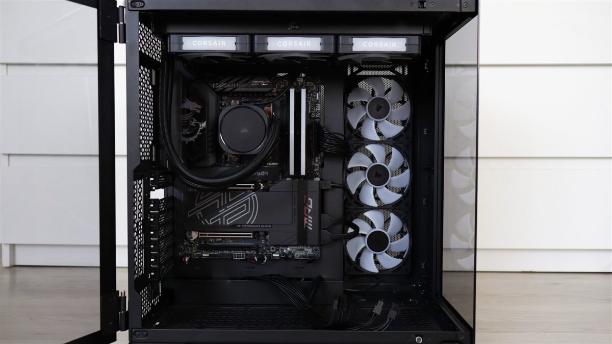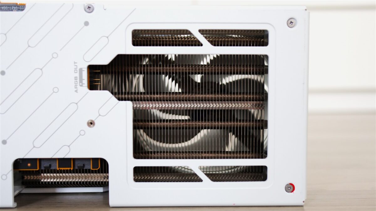 Designul este tipic unei astfel de componente, în sensul că partea frontală, să o numim, este cea dominantă de cele trei ventilatoare. Două dintre acestea se rotesc într-un sens, în timp ce cel din centru se învârte în direcția opusă. Cele șapte pale de tip AeroCurve ale fiecărui ventilator sunt unite printr-un inel exterior, astfel se pare că mare parte din turbulențe este diminuată. Ventilatoarele sunt montate pe rulmenți dubli, care, conform producătorului, oferă o durată de viață mai lungă cu până la 85% față de rulmenții simpli.