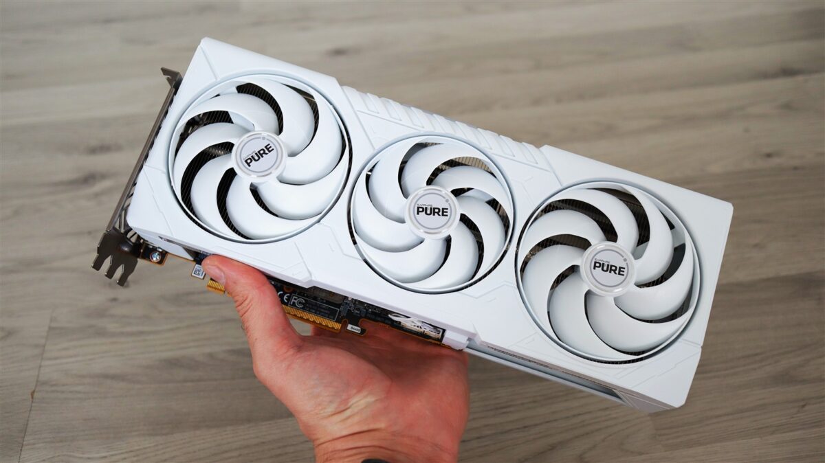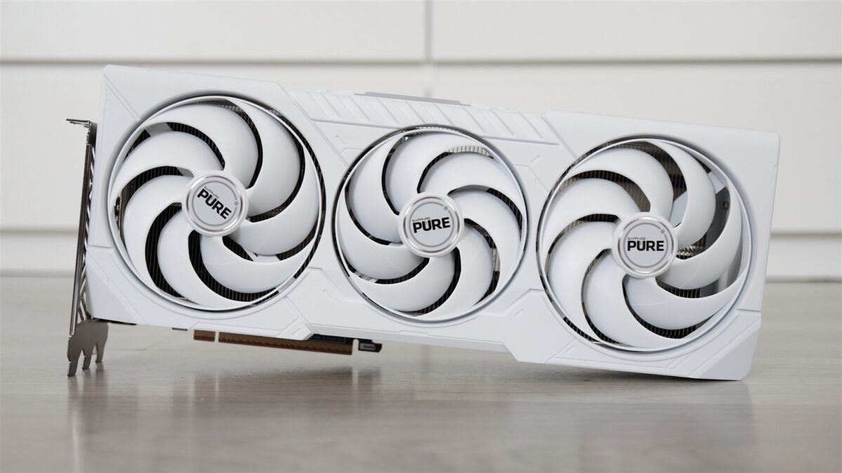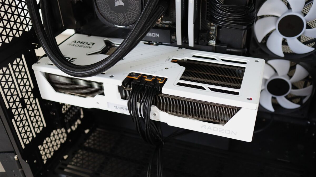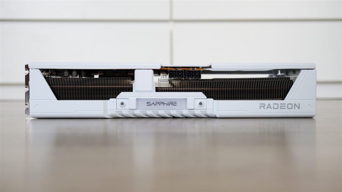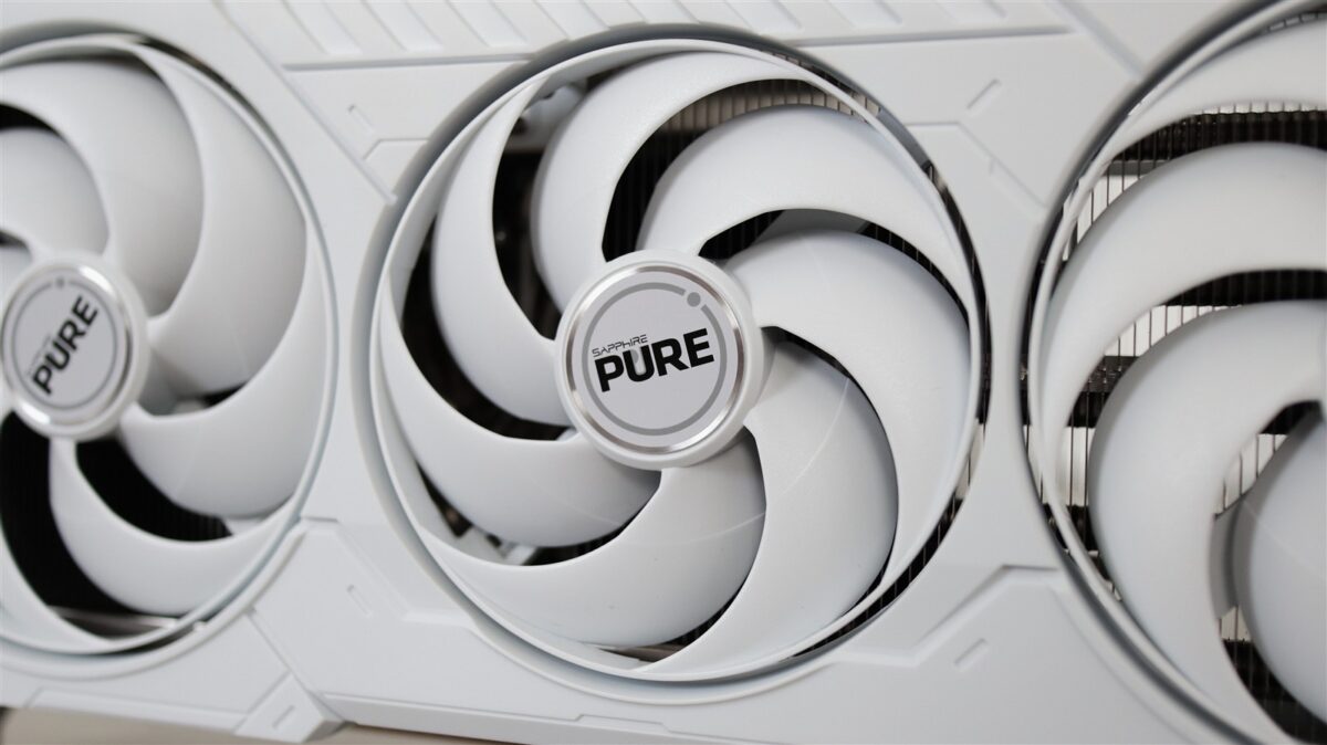 SAPPHIRE Pure AMD Radeon RX 9070 16GB are o culoare predominantă de alb. Este o abordare pe care am tot întâlnit-o în ultimul timp, configurarea unui sistem „all white” fiind la modă zilele acestea.