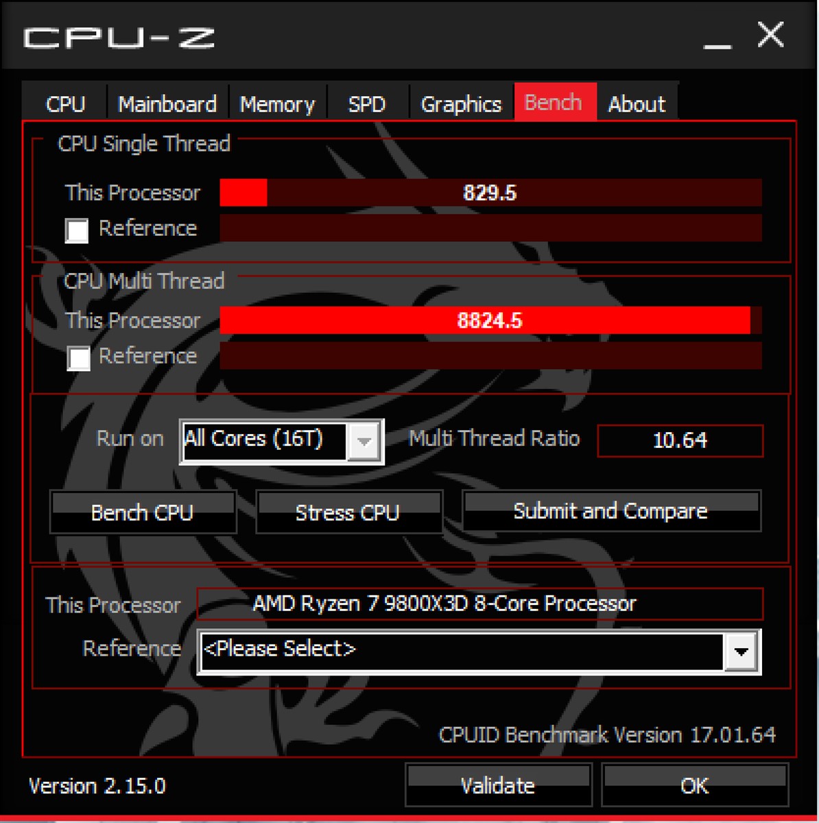 | CPU-Z v2.15.0 CPU Single Thread CPU Multi Thread | 829.5 puncte 8824.5 puncte |