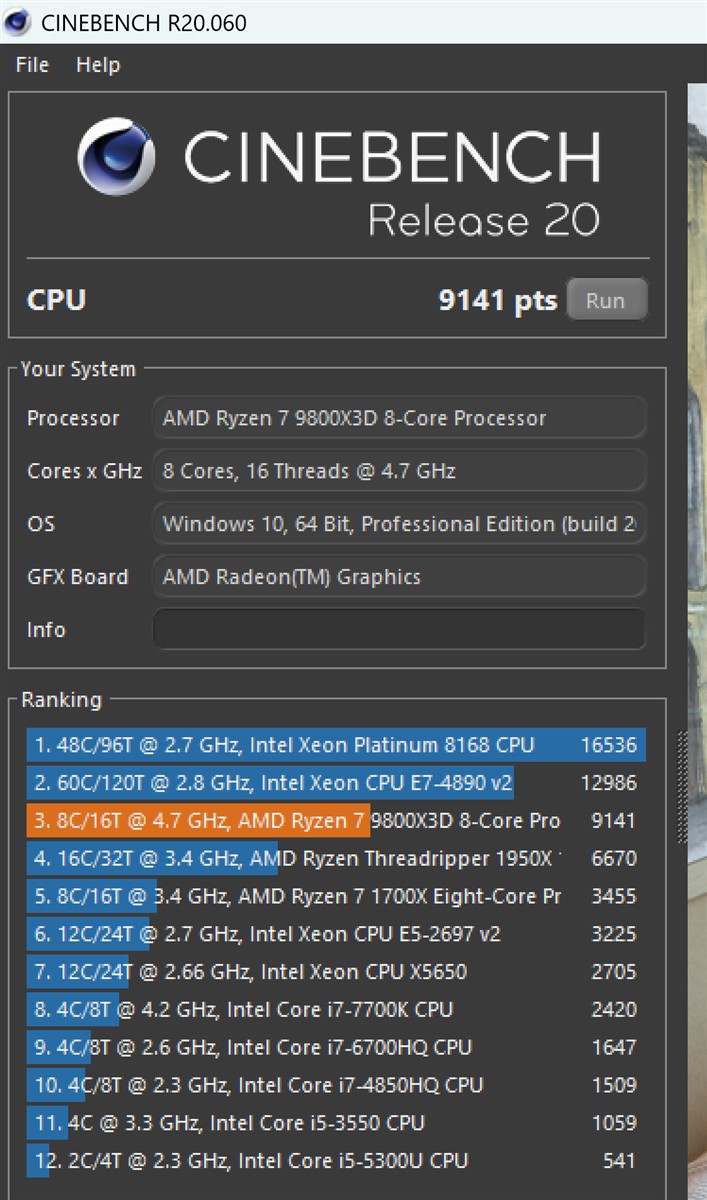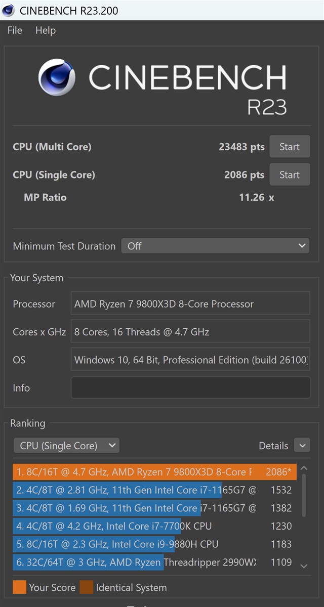 | Teste benchamrk CPU | AMD Ryzen 7 9800X3D |