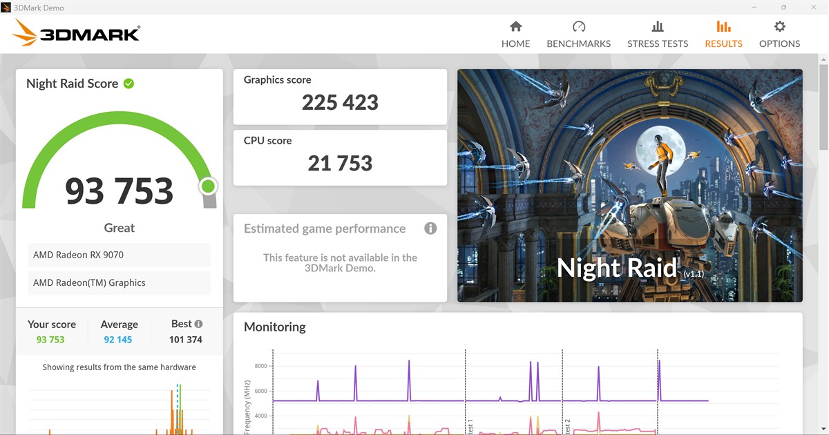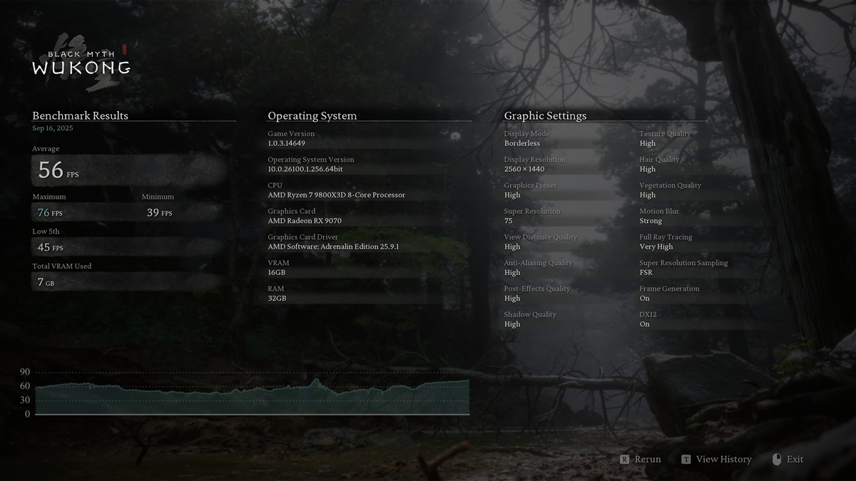 Aparte de cele de mai sus, am mai trecut placa video și prin câteva încercări din jocuri, mai precis din Black Myth: Wukong, Cyberpunk 2077 și F1 22, iar rezultatele sunt prinse în capturile de ecran de mai jos. Tot prin aceste imagini veți descoperi și rezoluția și la ce detalii grafice au fost făcute testele.