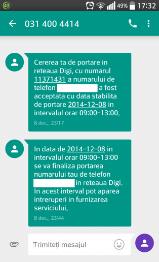 Momentul crucial în luarea deciziei mele a fost oferta lor de Black Friday, când 6 luni din abonamentul deja micşorat la 4 euro, erau gratis. Astfel, de Ziua Naţională a României mi-am portat numărul în reaţeaua RCS&RDS (sau cel puţin am crezut). La ghişeu mi s-a spus că pe data de 5 decembrie, numărul îmi va fi portat în reţeaua lor. Nu a fost să fie. Pe data de 8 decembrie, primesc mesaj că în acea zi voi fi portat. Nu a fost să fie. Seara primesc un alt mesaj care îmi transmitea că am fost portat. Ciudat, eu încă eram pe Orange.