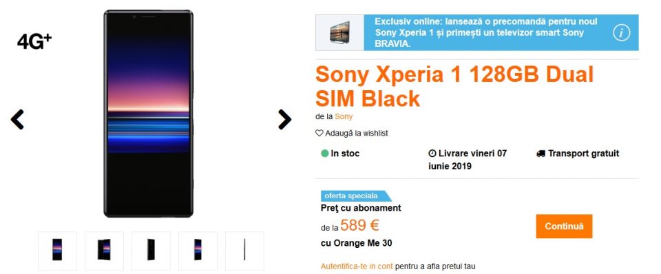 Sony Xperia 1 costă 589 euro împreună cu abonamentul Orange Me 30 şi 895 euro la liber, deci oferta este cât se poate de interesantă. Se încumetă cineva ?
