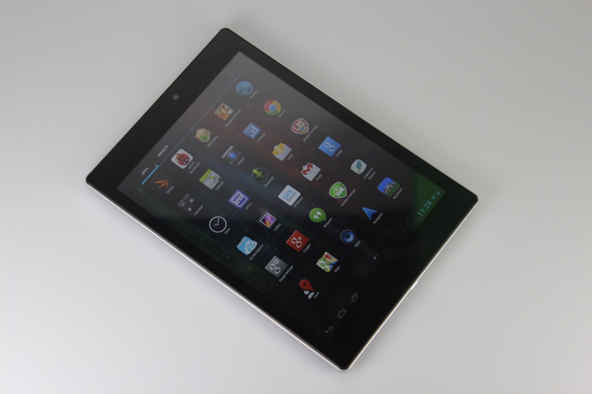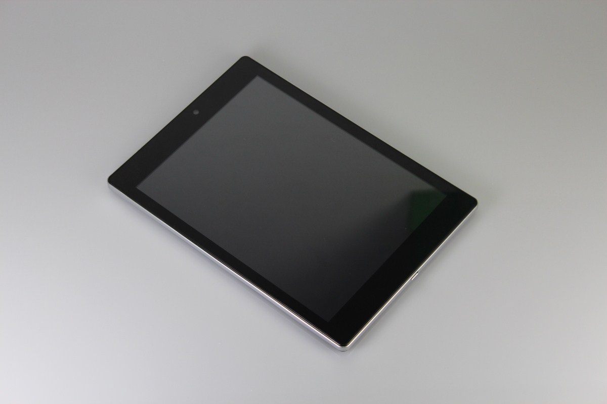 IPS de 7.85 inch cu rezoluția clasică de 1024×768 pixeli. Mi s-a părut a nu excela la capitolul luminozitate și reflecție a spațiului ambiant, stă ceva mai bine în ce privește unghiul de vizualizare. Cred că este un panel IPS din categoria B, cele din zona A sunt de calitate iPad, B și C-ul în segmente mai slabe.