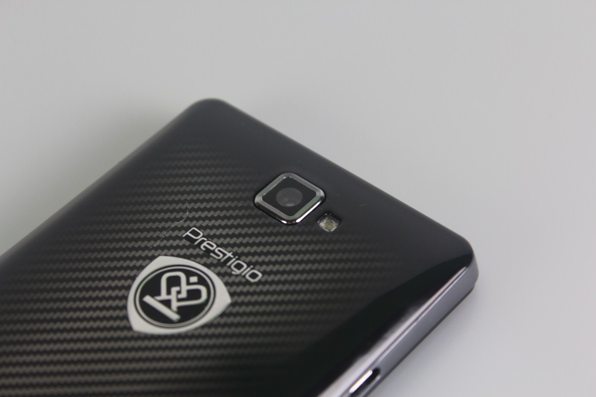 Logo-ul Prestigio nu-l regăsiți în partea frontală ci poziționat central pe spatele device-ului. Marginile telefonului sunt argintii. Dă impresia de telefon robust, bine construit. Nu scoate sunete ciudate pe la îmbinarea plasticelor. Apreciez la Prestigio 5430 că nu pare a fi un smartphone făcut cu schițele vreunui alt telefon Android în față. Au mizat pe originalitate.