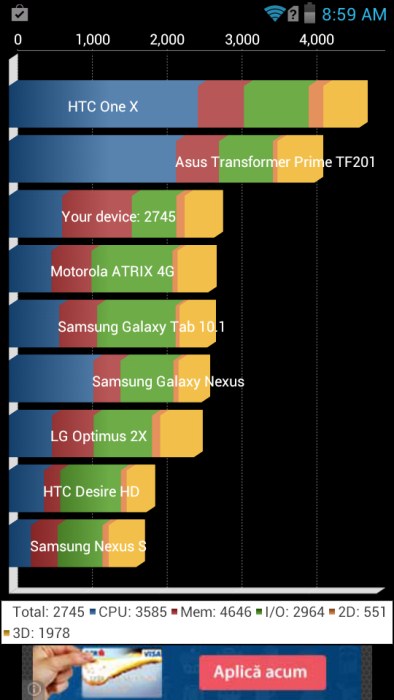 Intel încearcă marea cu degetul și aici mă refer la primele lor procesoare pentru telefoanele Android. Primul CPU adus de către gigantul american a fost cel preluat de Prestigio MultiPhone 5430, dar și de ZTE Grand X In. În testele de benchmark a ieșit sub Allview A5 Duo / telefon de 500 lei cu procesor MediaTek dual-core la 1.3 GHz + Mali-400 + 512 MB RAM.