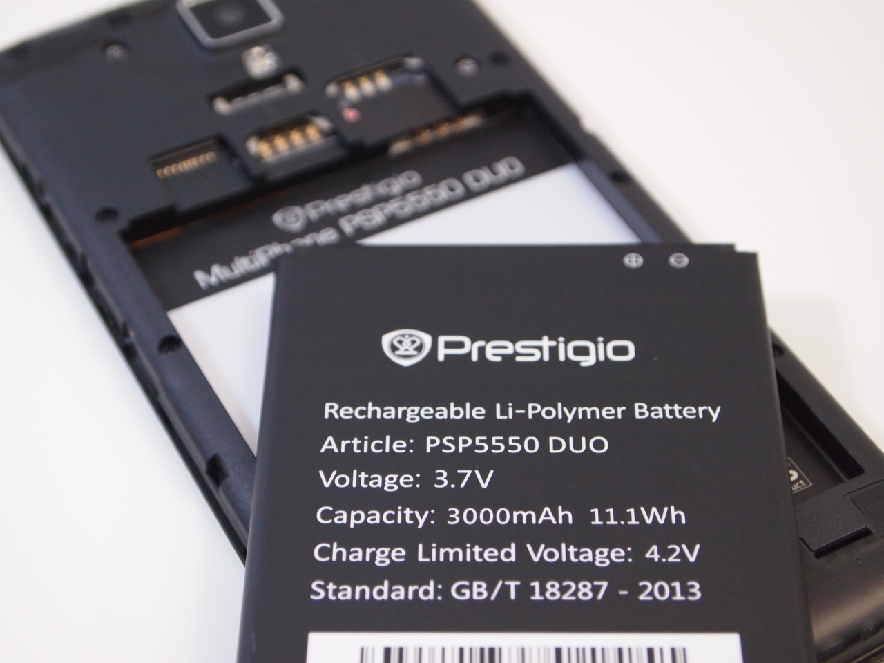 Acumulatorul de 3000 mAh din Prestigio MultiPhone 5550 DUO se descurcă bine și reușește să ofere o zi de autonomie în condiții solicitante. Ansamblul hardware și ecranul cu rezoluție HD (și nu FullHD) nu pun la o încercare prea grea bateria.
