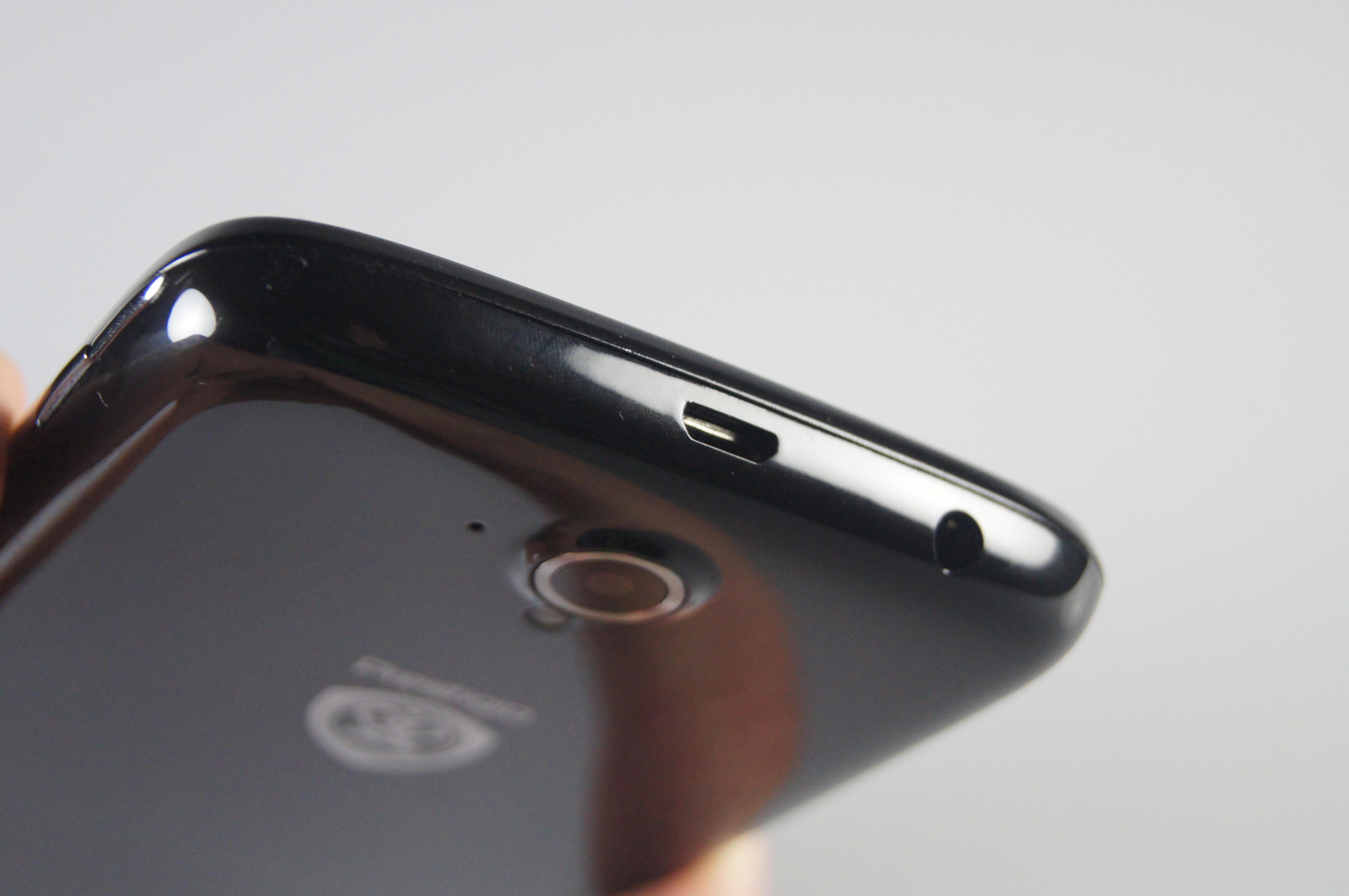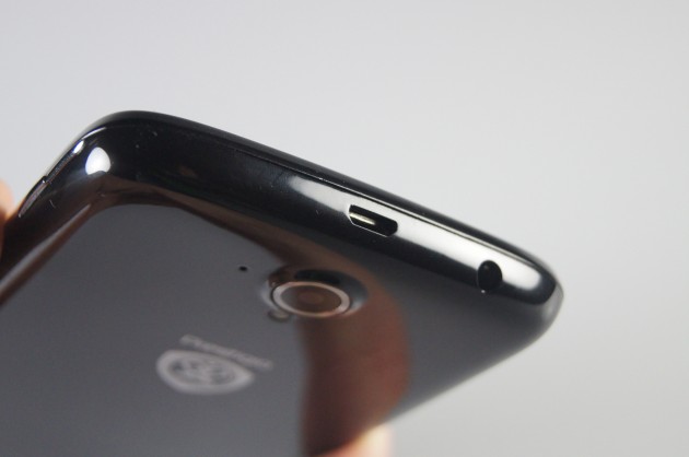 Capacul bateriei a fost fabricat dintr-un plastic lucios care adună amprentele. Se desface ușor de la un lăcaș special, oferă acces către sloturile pentru cele două cartele SIM cât și către microSD-ul de până la 32 GB ce suplinește cei 4 GB incluși în standard. Au pus o margine metalică ce contribuie la impresia de rezistență.