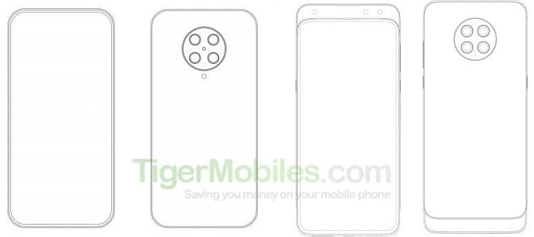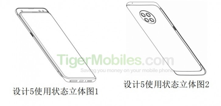 Pe spate observăm un ansamblu foto format din 4 senzori poziţionaţi central în zona superioară, iar lipsa unui scanner de amprente fizic ne duce automat cu gândul la implementarea unui cititor de amprente în display (aproape sigur unul AMOLED). Din schiţe se mai observă difuzoarele duale, portul USB Type-C şi lipsa jack-ului audio de 3.5 mm.