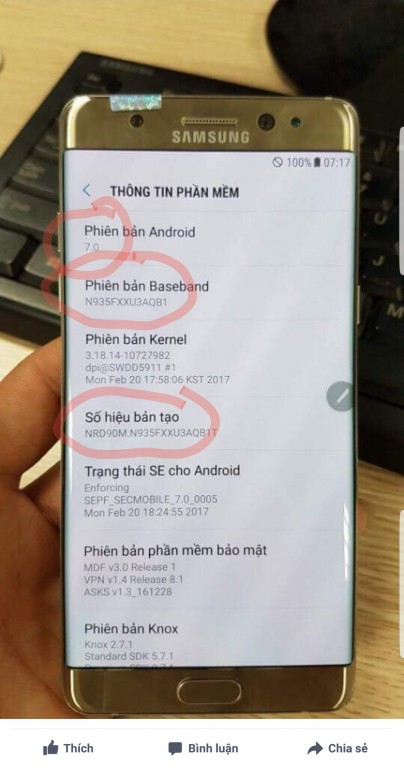 Din Vietnam primim primele imagini cu Samsung Galaxy Note7 versiunea recondiţionată, iar prin intermediul acestora observăm că din punct de vedere estetic device-ul rămâne identic, însă apar câteva modificări: noul număr de serie va fi N935F (original era N930F), capacitatea bateriei va fi redusă de la 3500 mAh la 3200 mAh (se pare că şi la capitolul dimensiuni va fi mai mică, astfel încât să nu mai fie atât de înghesuită) şi rulează Android 7.0 Nougat.