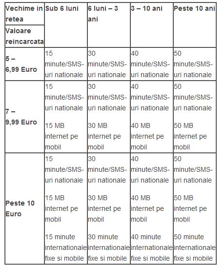 Bonusurile din programul de loializare pentru cartele preplătite: