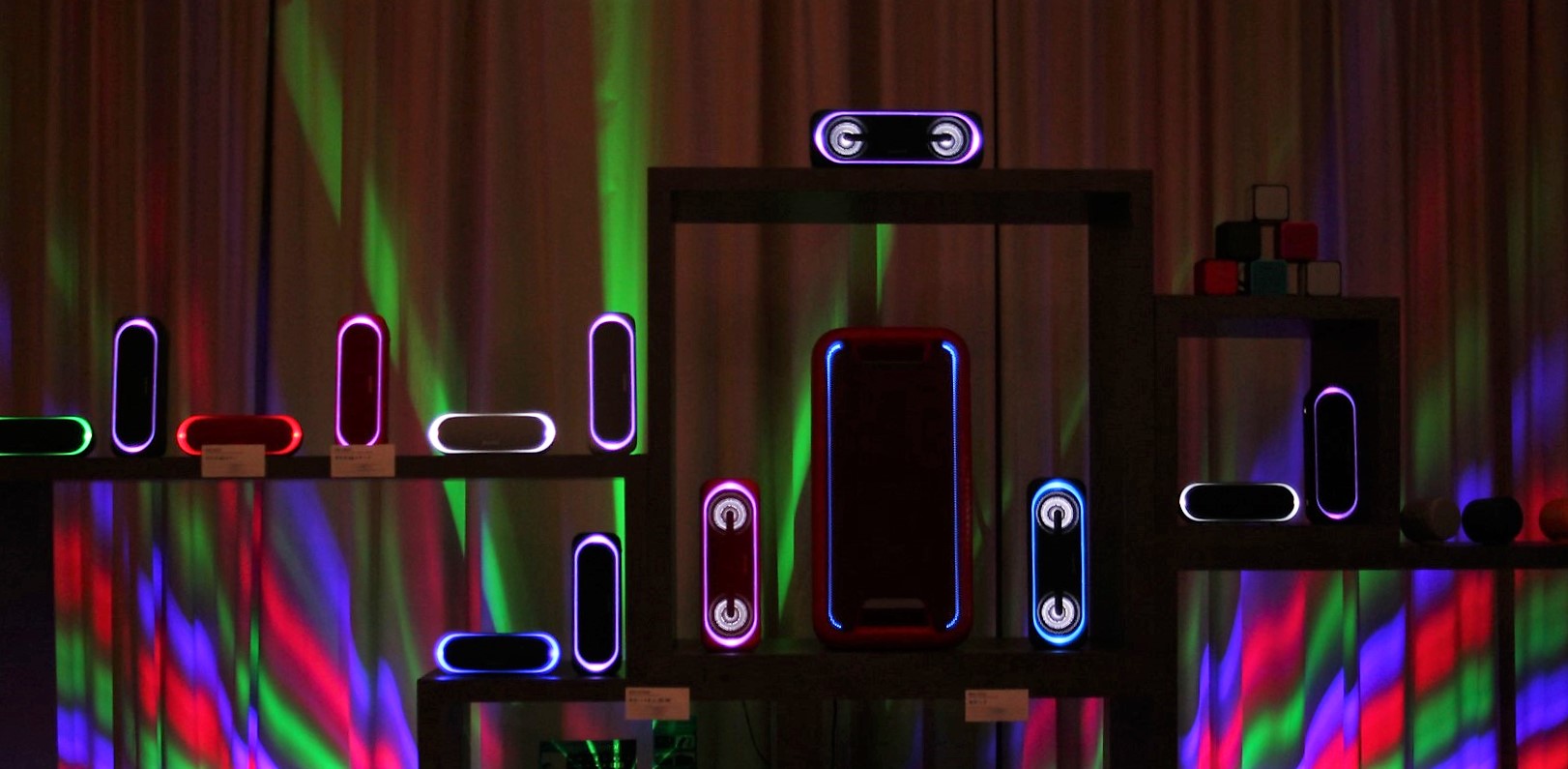 În această cameră erau expuse și multe modele de boxe wireless, portabile, unele rezistente la apă, altele dotate cu lumini pentru petrecere: