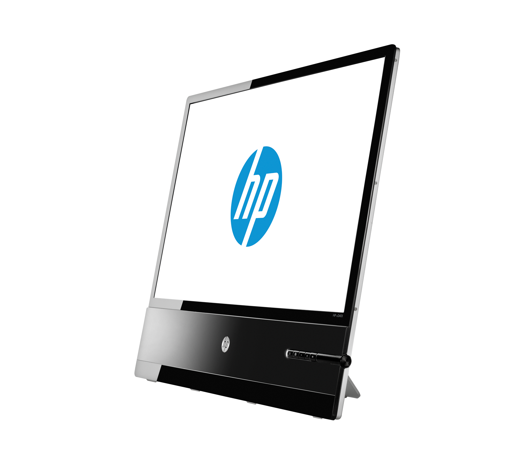 b. Monitor HP x2401 – 24 inch cu panel LED-backlit iluminat din spate, ecran subțire cu tehnologie MVA, unghi de vizionare larg, trepied reglabil, conectori în formă de L spre a fixa cablurile în spate, aspect metalic;