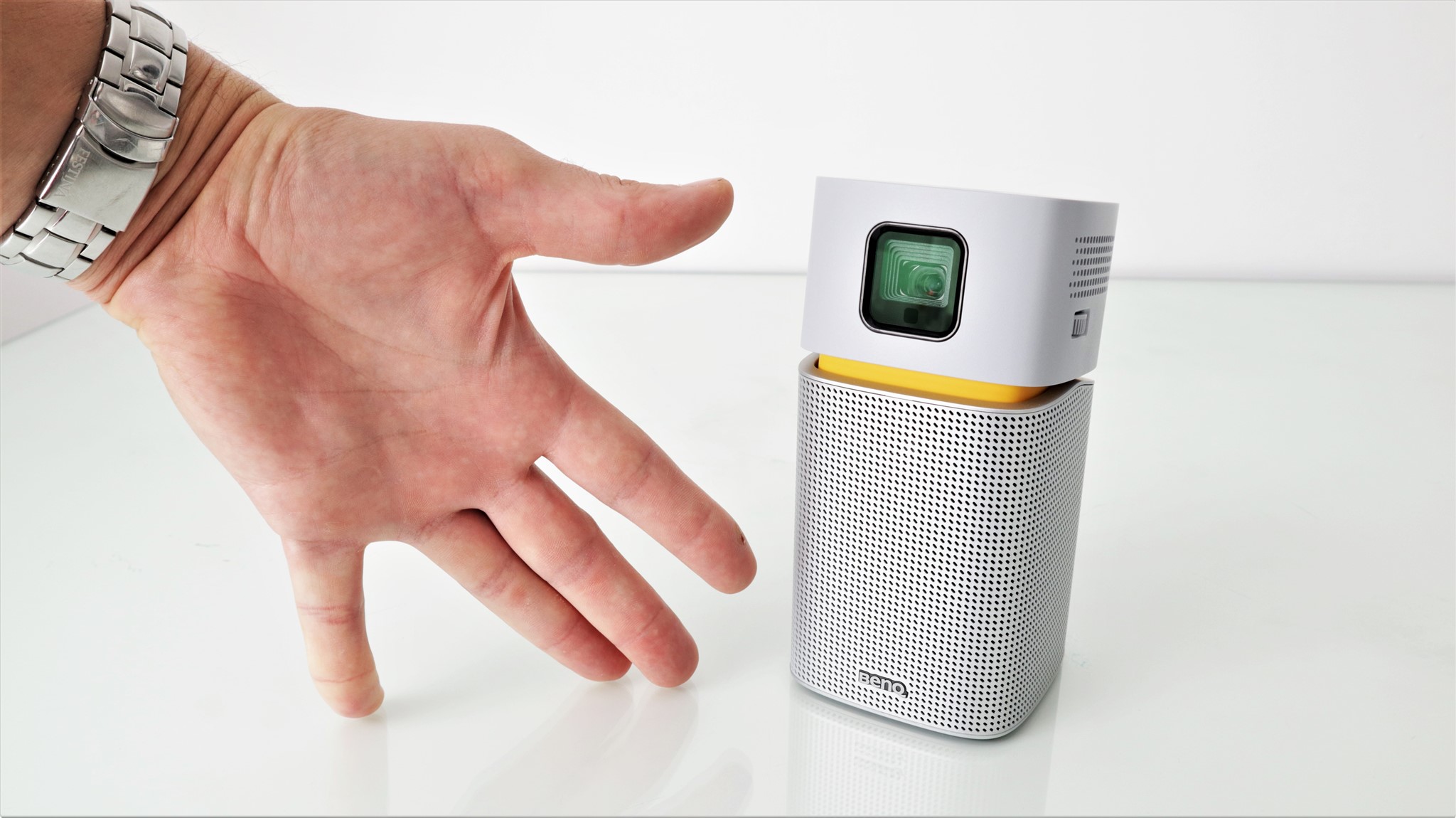 Proiectorul BenQ GV1 este micuț, mult mai micuț decât ar putea părea din pozele de prezentare ale produsului. Am încercat să evidențiez aici cam cât este de compact: