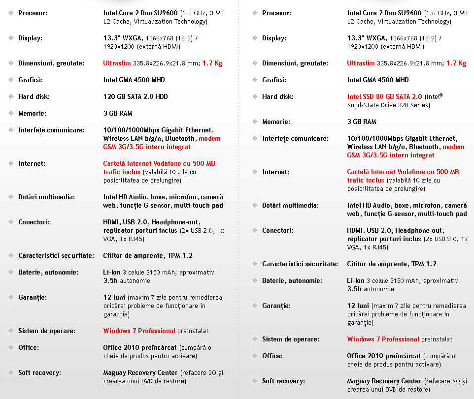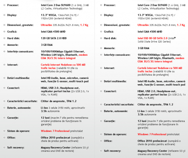 Mi se pare o ofertă demnă de semnalat și luat în seamă. Vorbim de un Maguay eXpertBook 3G Altro cu ecran de 13.3 inch, rezoluție de 1366×768 pixeli, procesor Intel Core 2 Duo, grosime de 21.8 mm și 1.7 kg, HDD de 120 GB spațiu de stocare pentru cel de 1.499 lei și SSD de 80 GB pentru varianta 3G Altro de 1.999 lei. Aduce și Windows 7 preinstalat.